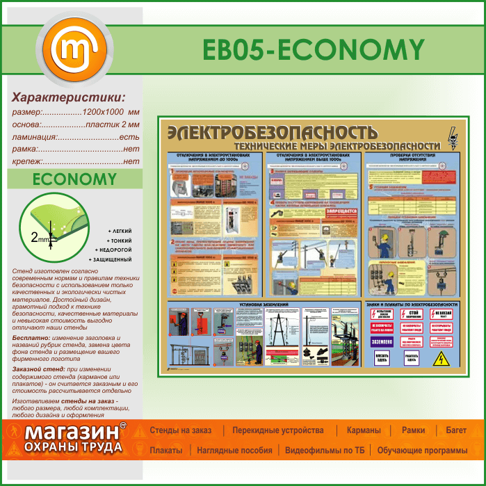 Стенд «Электробезопасность. Технические меры электробезопасности» (EB-05-ECONOMY) в Ачинске купить