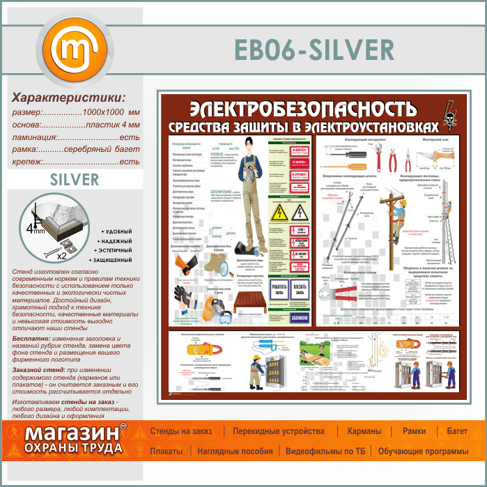 Стенд «Электробезопасность. Средства защиты в электроустановках» (EB-06-SILVER) в Ачинске купить