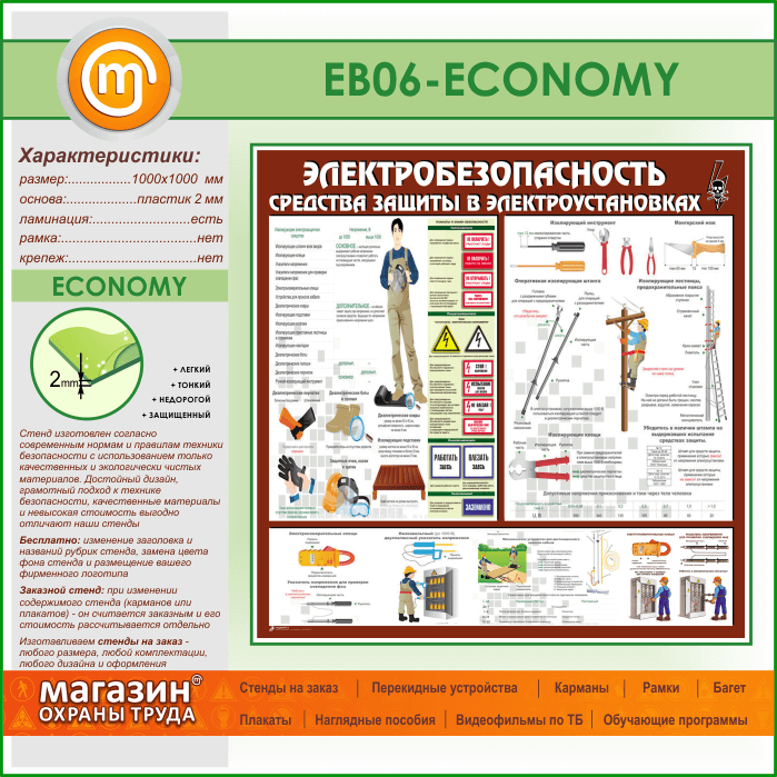 Стенд «Электробезопасность. Средства защиты в электроустановках» (EB-06-ECONOMY) в Ачинске купить