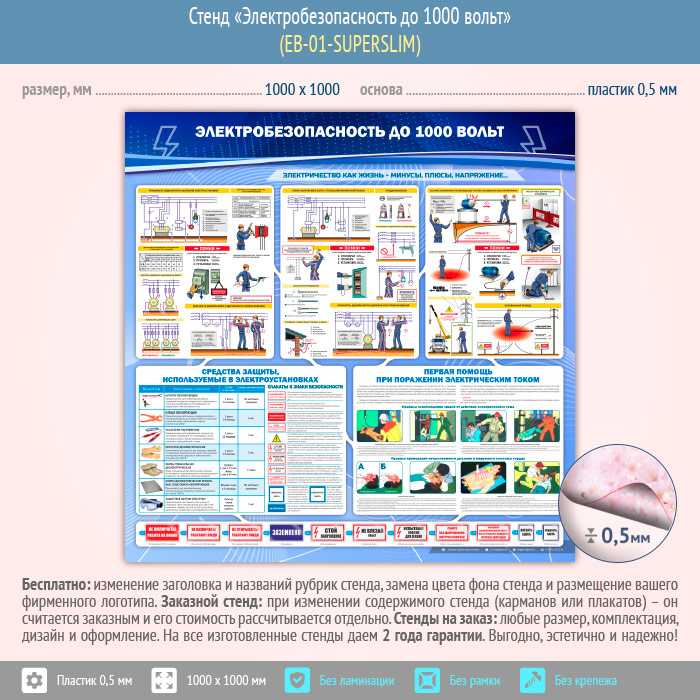 Стенд «Электробезопасность до 1000 вольт» (EB-01-SUPERSLIM) в Ачинске купить