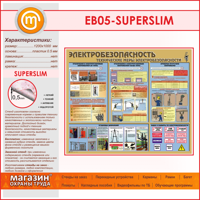 Стенд «Электробезопасность. Технические меры электробезопасности» (EB-05-SUPERSLIM) в Ачинске купить