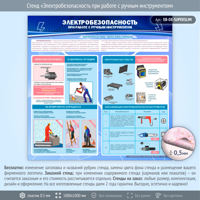 Стенд «Электробезопасность при работе с ручным инструментом» (EB-08-SUPERSLIM) в Ачинске купить