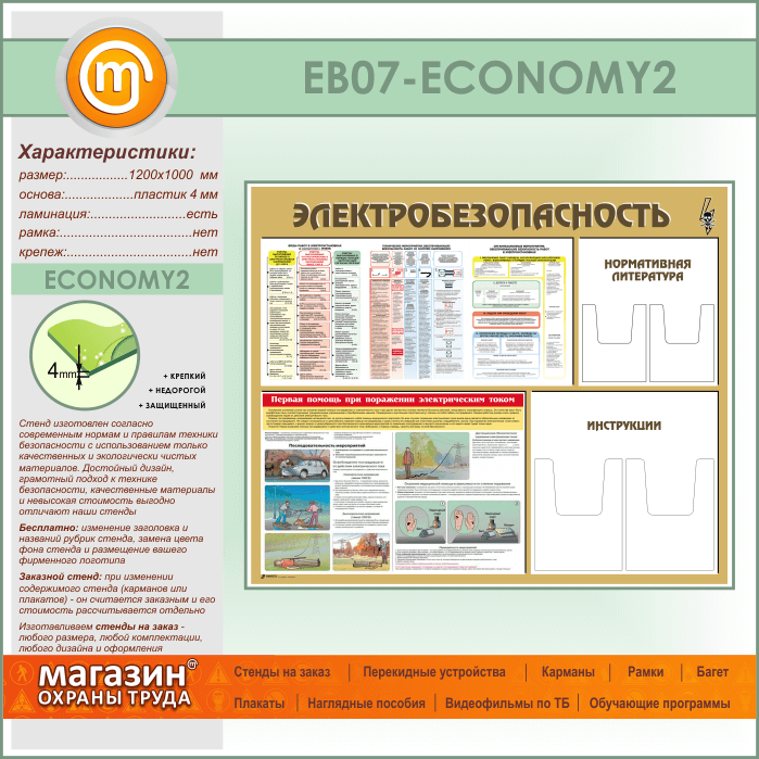 Стенд «Электробезопасность» с 4 объемными карманами (EB-07-ECONOMY2) в Ачинске купить