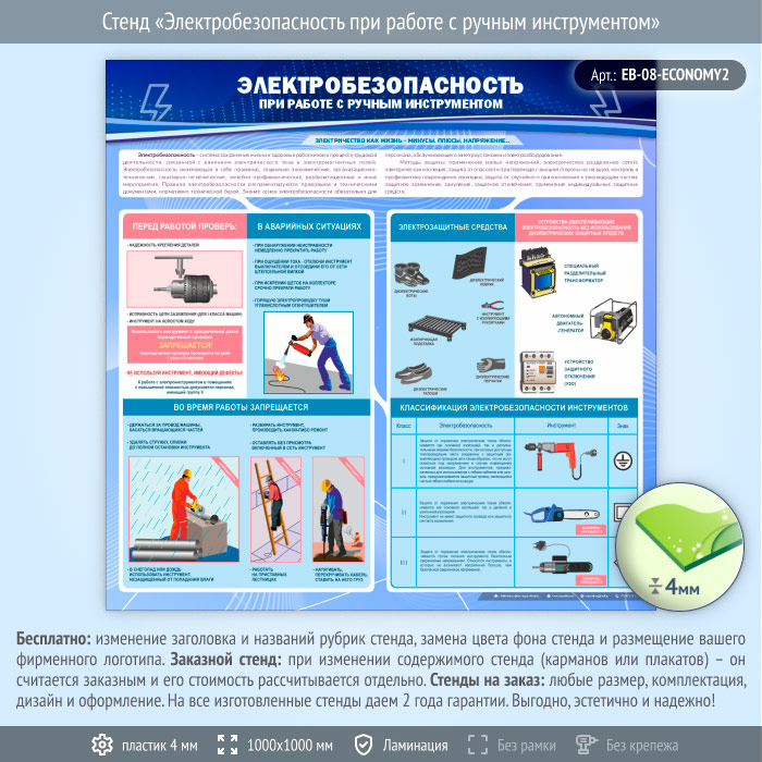 Стенд «Электробезопасность при работе с ручным инструментом» (EB-08-ECONOMY2) в Ачинске купить