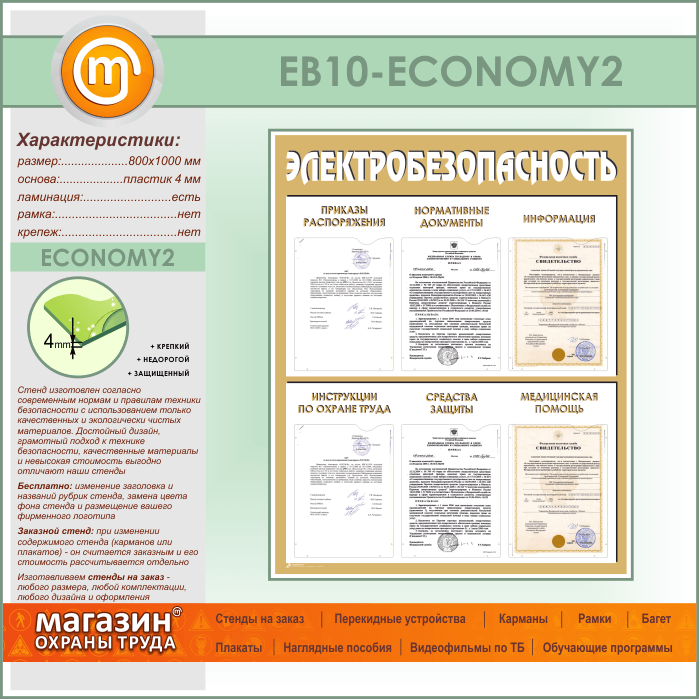 Стенд «Электробезопасность» с 6 карманами (EB-10-ECONOMY2) в Ачинске купить