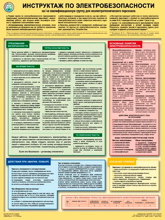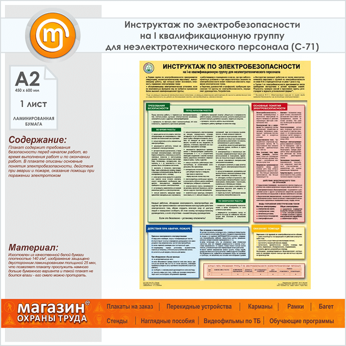 Плакат «Инструктаж по электробезопасности - на I квалификационную группу для неэлектротехнического персонала» (С-71, ламинированная бумага, А2, 1 лист) в Ачинске купить