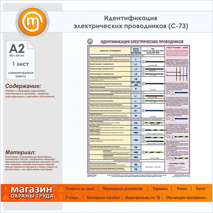 Плакат «Идентификация электрических проводников» (С-73, ламинированная бумага, А2, 1 лист) в Ачинске купить