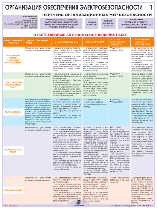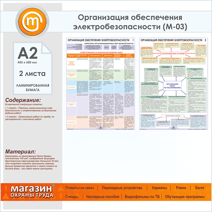 Плакаты «Организация обеспечения электробезопасности» (М-03, ламинированная бумага, А2, 2 листа) в Ачинске купить