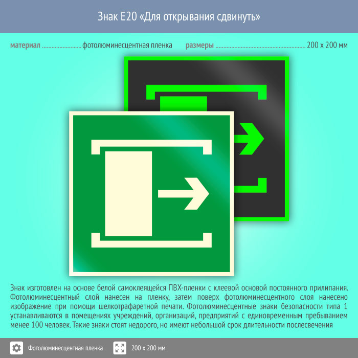 Знак E20 «Для открывания сдвинуть» (фотолюминесцентная пленка, 200х200 мм) в Ачинске купить