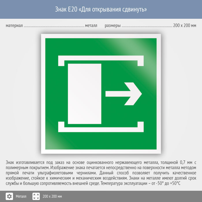 Знак E20 «Для открывания сдвинуть» (металл, 200х200 мм) в Ачинске купить
