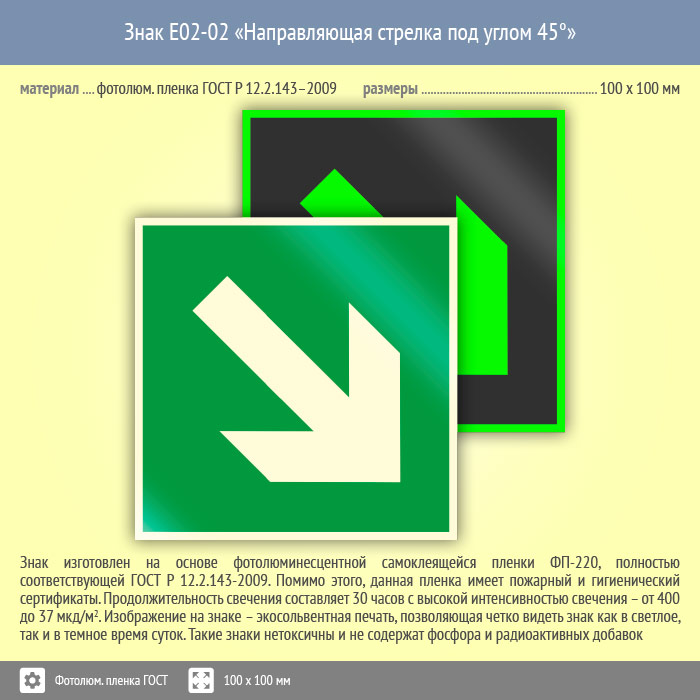 Знак E02-02 «Направляющая стрелка под углом 45°» (фотолюминесцентная пленка ГОСТ 34428-2018, 100х100 мм) в Ачинске купить
