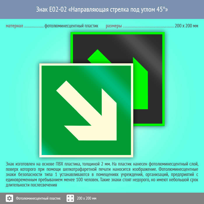 Знак E02-02 «Направляющая стрелка под углом 45°» (фотолюминесцентный пластик, 200х200 мм) в Ачинске купить