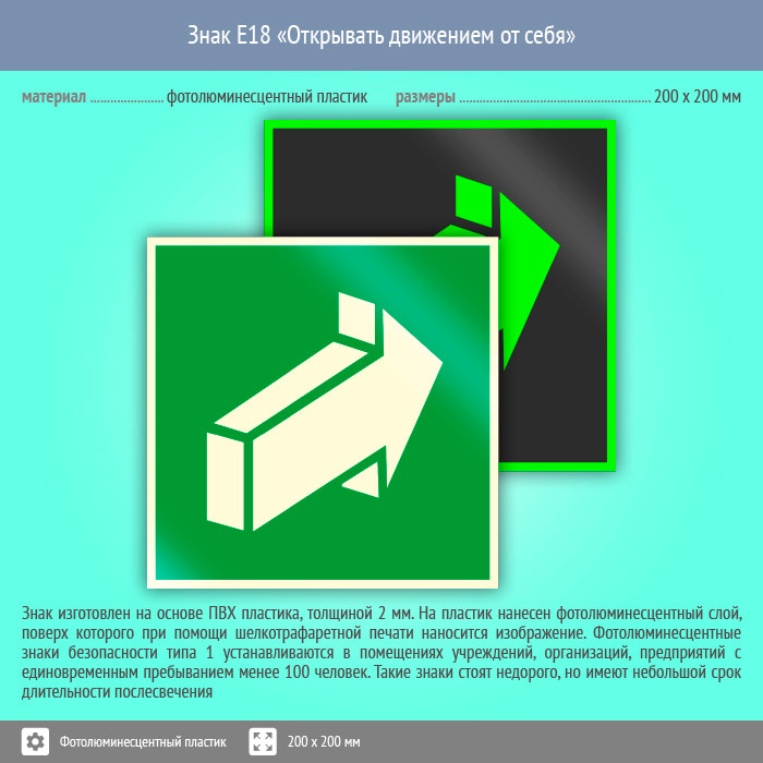 Знак E18 «Открывать движением от себя» (фотолюминесцентный пластик, 200х200 мм) в Ачинске купить