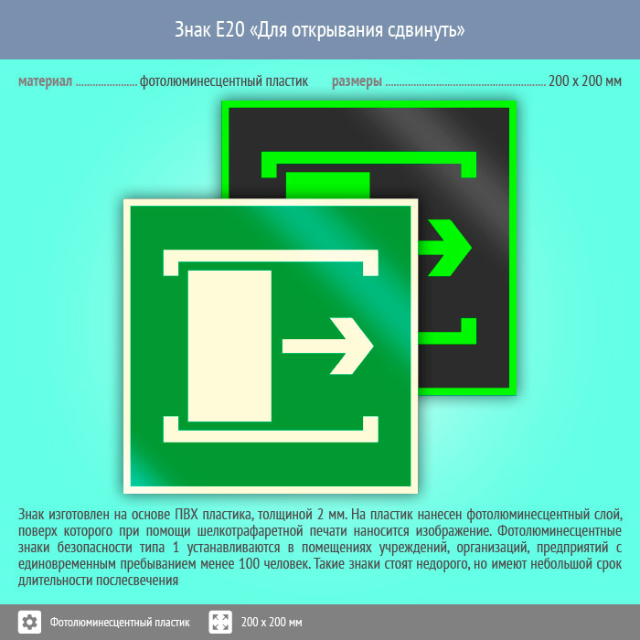 Знак E20 «Для открывания сдвинуть» (фотолюминесцентный пластик, 200х200 мм) в Ачинске купить