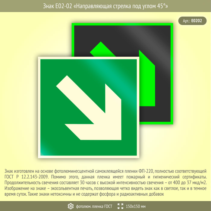 Знак E02-02 «Направляющая стрелка под углом 45°» (фотолюминесцентная пленка ГОСТ 34428-2018, 150х150 мм) в Ачинске купить
