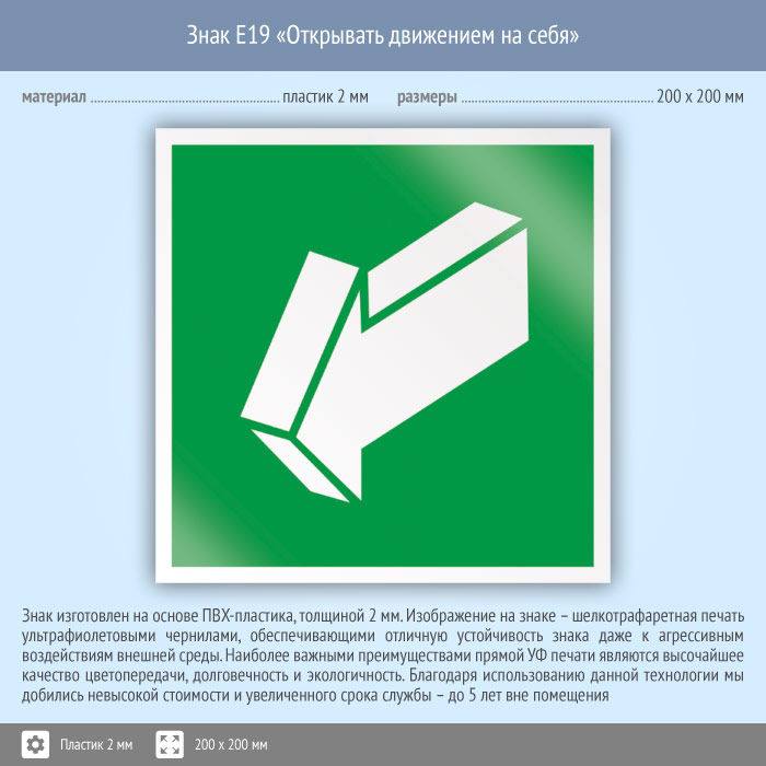 Знак E19 «Открывать движением на себя» (пластик, 200х200 мм) в Ачинске купить