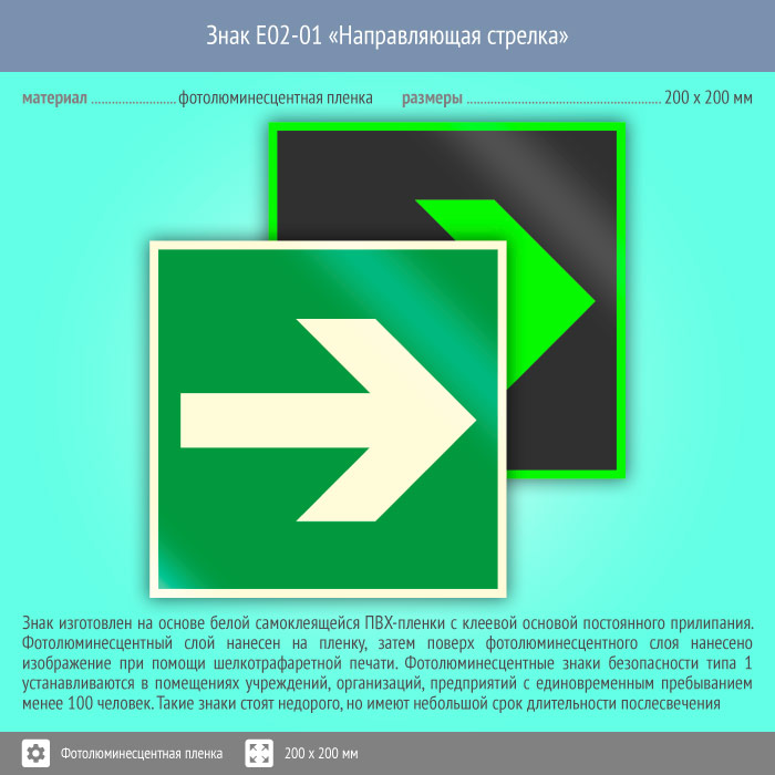 Знак E02-01 «Направляющая стрелка» (фотолюминесцентная пленка, 200х200 мм) в Ачинске купить