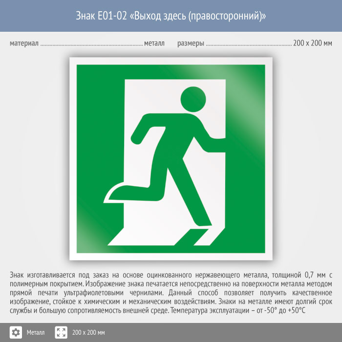 Знак E01-02 «Выход здесь (правосторонний)» (металл, 200х200 мм) в Ачинске купить