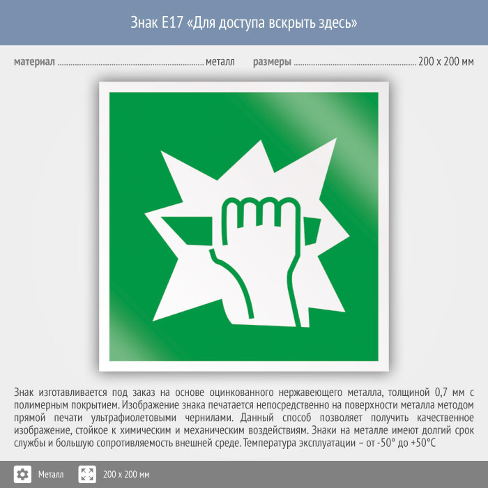 Знак E17 «Для доступа вскрыть здесь» (металл, 200х200 мм) в Ачинске купить