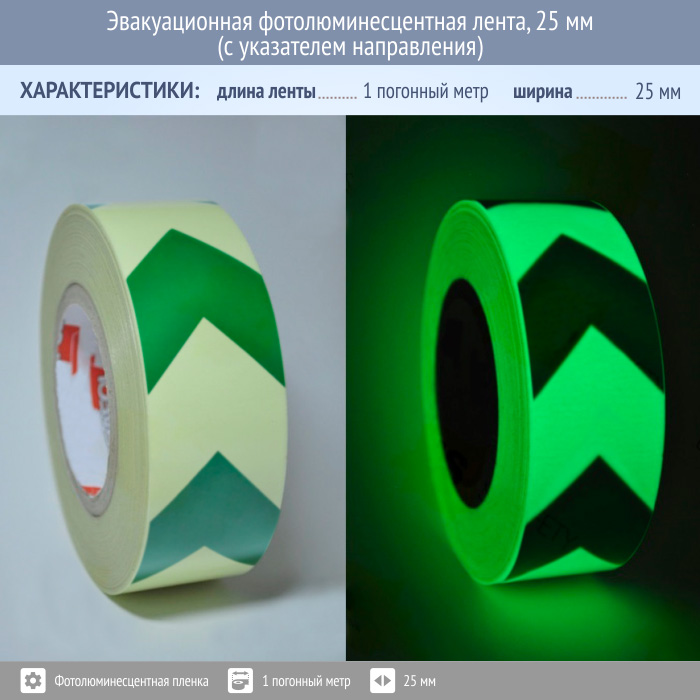Эвакуационная фотолюминесцентная лента, 25 мм (с указателем направления) в Ачинске купить