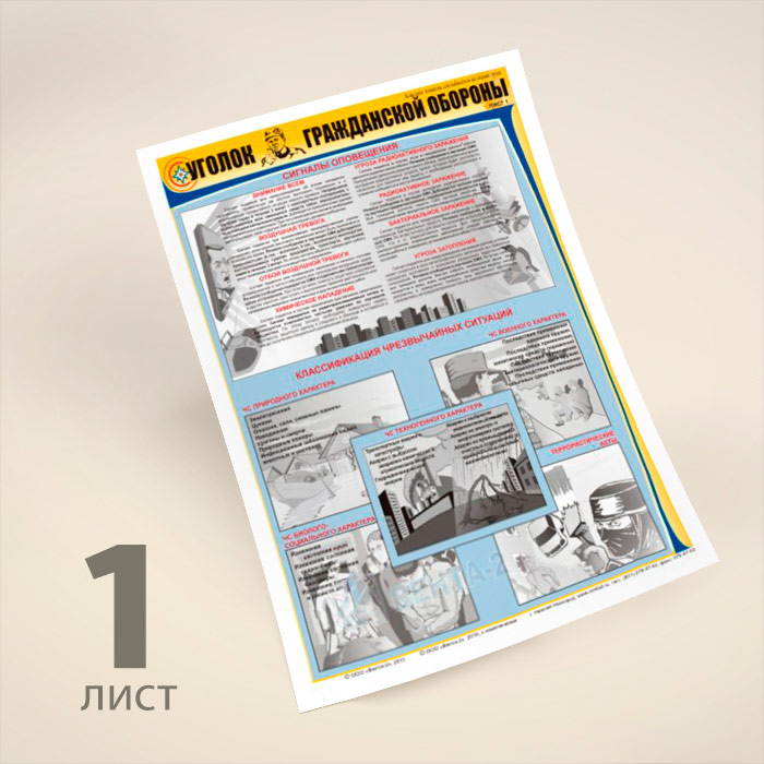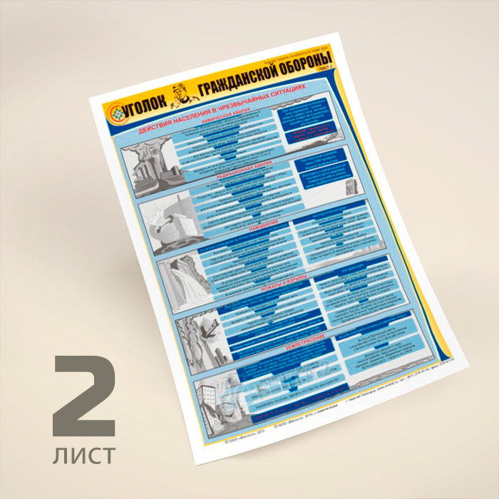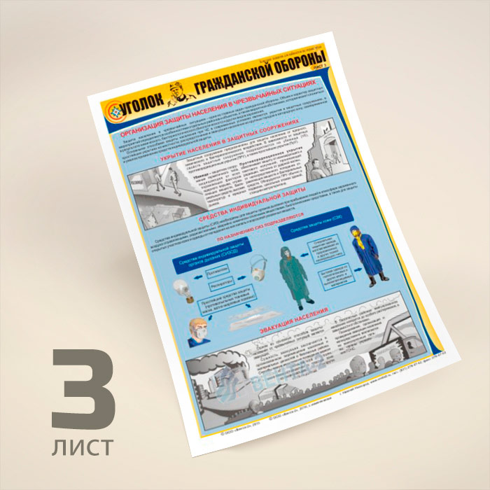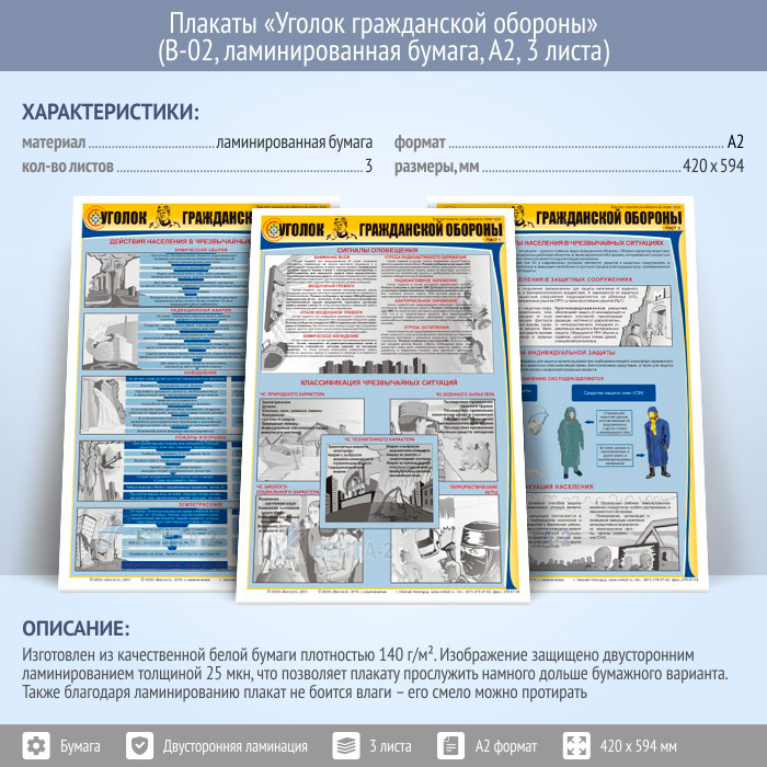 Плакаты «Уголок гражданской обороны» (В-02, ламинированная бумага, А2, 3 листа) в Ачинске купить
