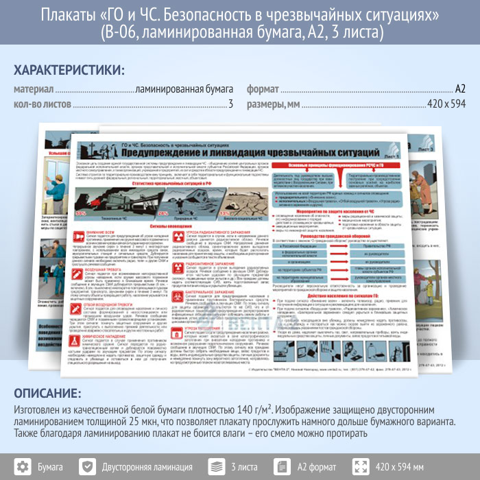 Плакаты «ГО и ЧС. Безопасность в чрезвычайных ситуациях» (В-06, ламинированная бумага, А2, 3 листа) в Ачинске купить