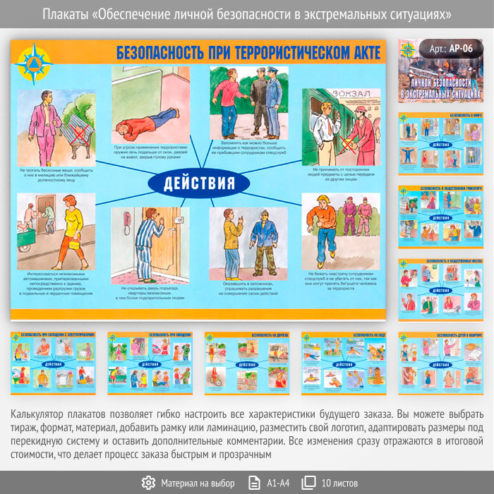 Плакаты «Обеспечение личной безопасности в экстремальных ситуациях» (АР-06, 10 листов) в Ачинске купить