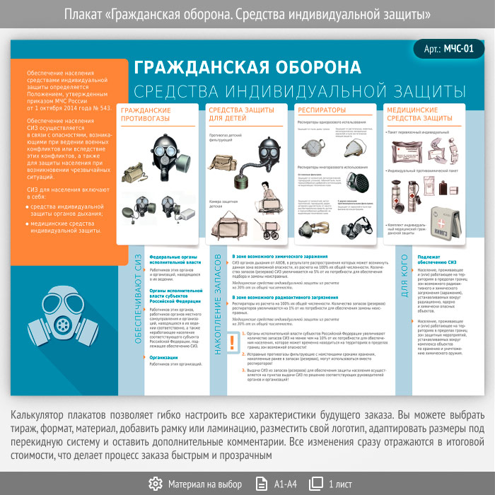Плакат «Гражданская оборона. Средства индивидуальной защиты» (МЧС-01, 1 лист) в Ачинске купить