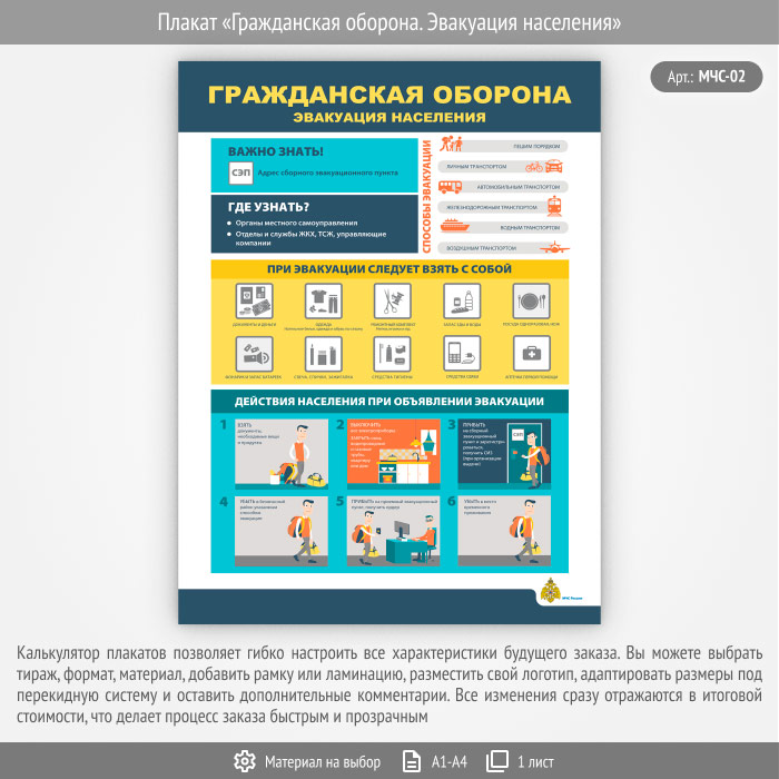 Плакат «Гражданская оборона. Эвакуация населения» (МЧС-02, 1 лист) в Ачинске купить
