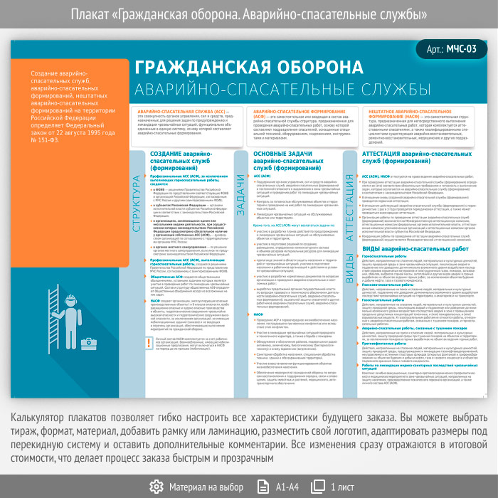 Плакат «Гражданская оборона. Аварийно-спасательные службы» (МЧС-03, 1 лист) в Ачинске купить