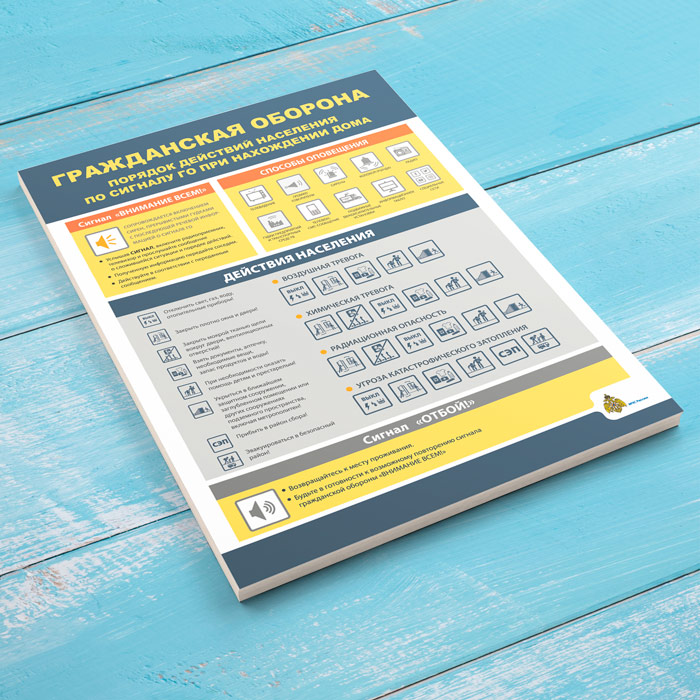 Плакат «Гражданская оборона. Порядок действия населения по сигналу ГО при нахождении дома» (МЧС-04, 1 лист) в Ачинске купить