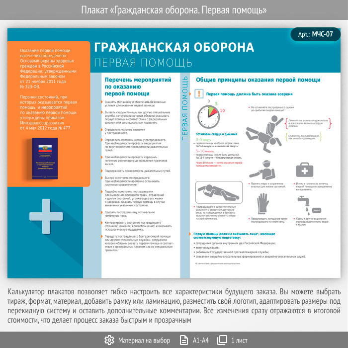 Плакат «Гражданская оборона. Первая помощь» (МЧС-07, 1 лист) в Ачинске купить