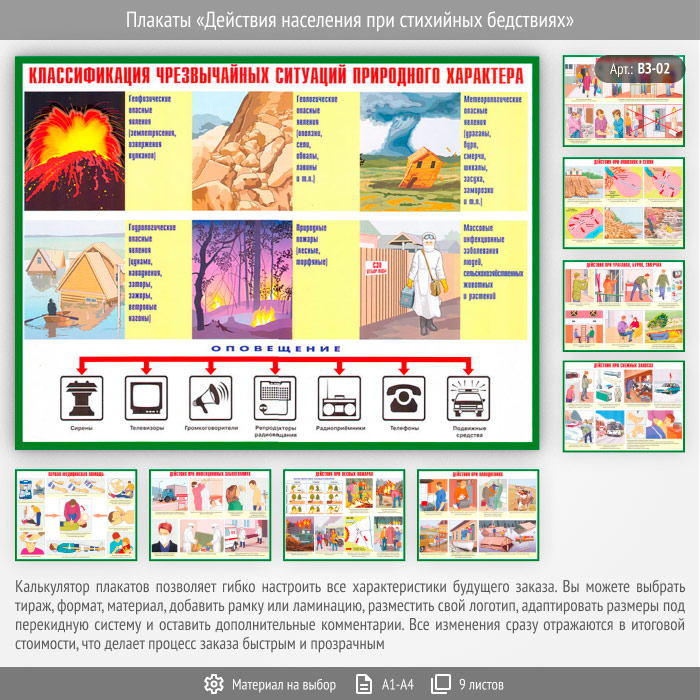 Плакаты «Действия населения при стихийных бедствиях» (ВЗ-02, 9 листов) в Ачинске купить