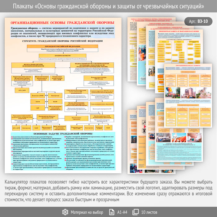 Плакаты «Основы гражданской обороны и защиты от чрезвычайных ситуаций» (ВЗ-10, 10 листов) в Ачинске купить