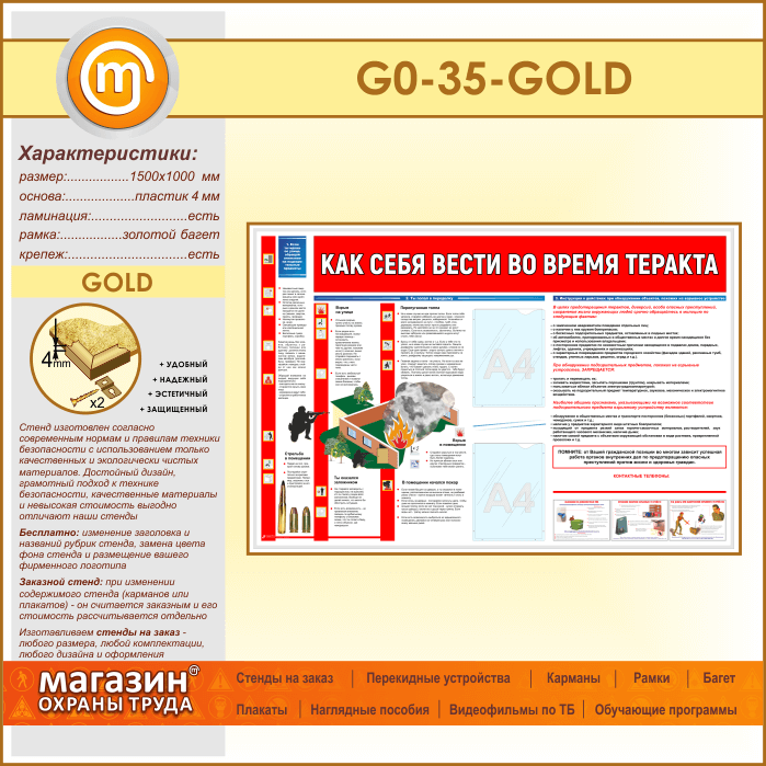 Стенд «Как себя вести во время теракта» c 2 карманами (GO-35-GOLD) в Ачинске купить