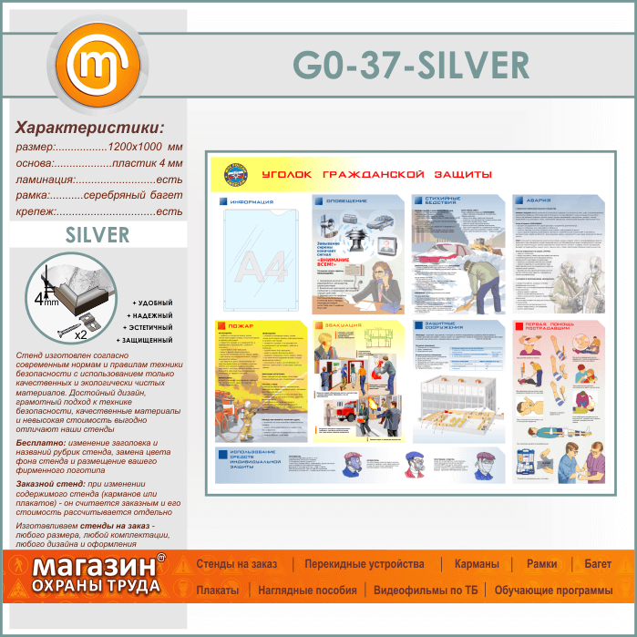 Стенд «Уголок гражданской защиты» с карманом (GO-37-SILVER) в Ачинске купить