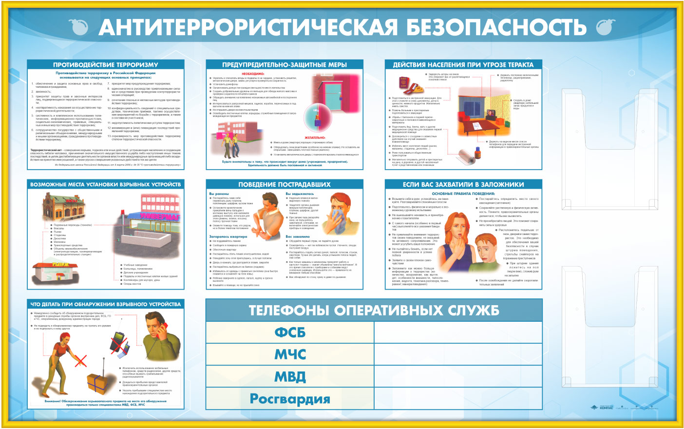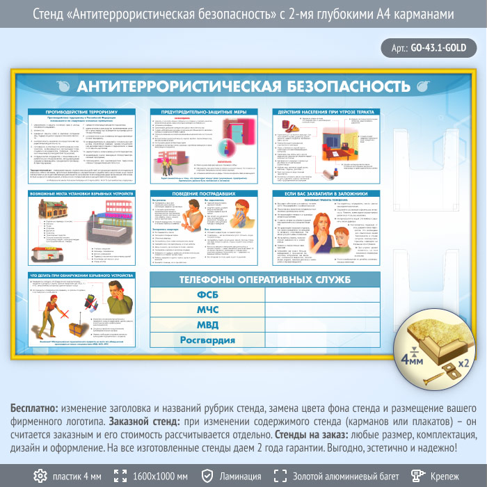 Стенд «Антитеррористическая безопасность» с 2-мя глубокими А4 карманами (GO-43.1-GOLD) в Ачинске купить