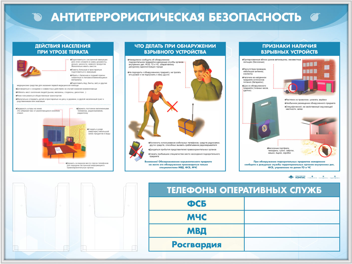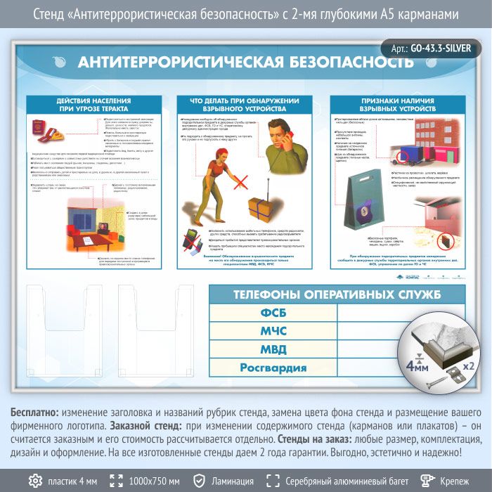 Стенд «Антитеррористическая безопасность» с 2-мя глубокими А5 карманами (GO-43.3-SILVER) в Ачинске купить
