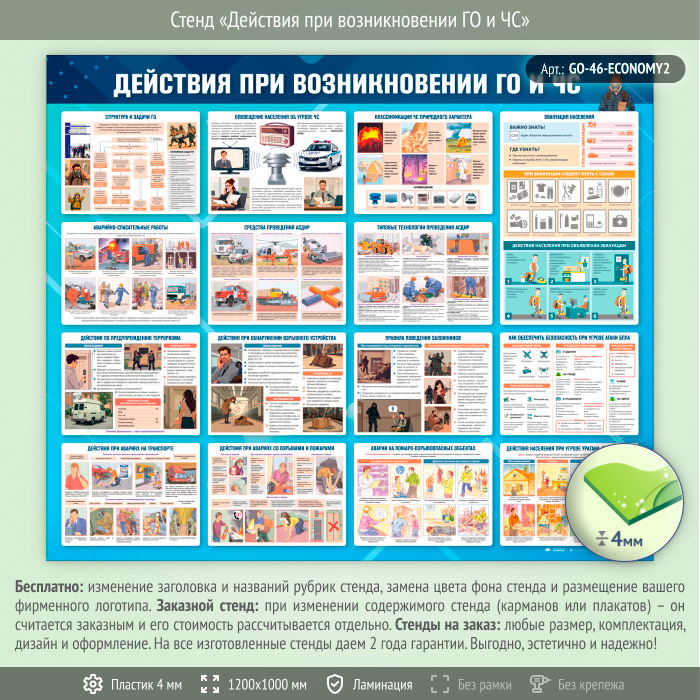 Стенд «Действия при возникновении ГО и ЧС» (GO-46-ECONOMY2) в Ачинске купить