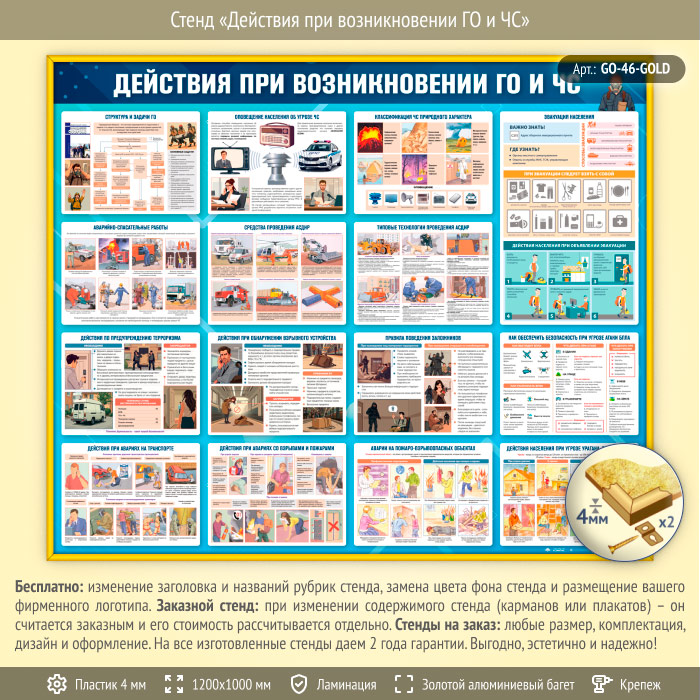 Стенд «Действия при возникновении ГО и ЧС» (GO-46-GOLD) в Ачинске купить