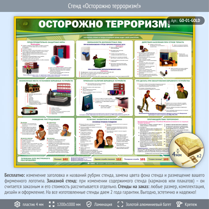 Стенд «Осторожно терроризм!» (GO-01-GOLD) в Ачинске купить