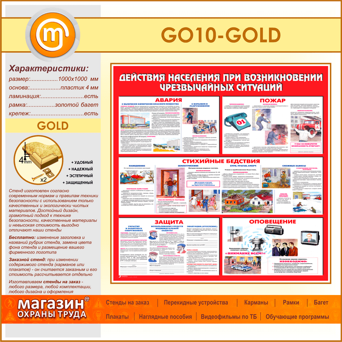 Стенд «Действия населения при возникновении чрезвычайных ситуаций» (GO-10-GOLD) в Ачинске купить