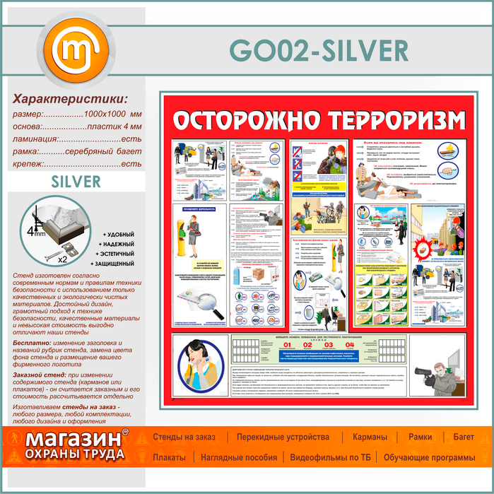 Стенд «Осторожно терроризм!» (GO-02-SILVER) в Ачинске купить