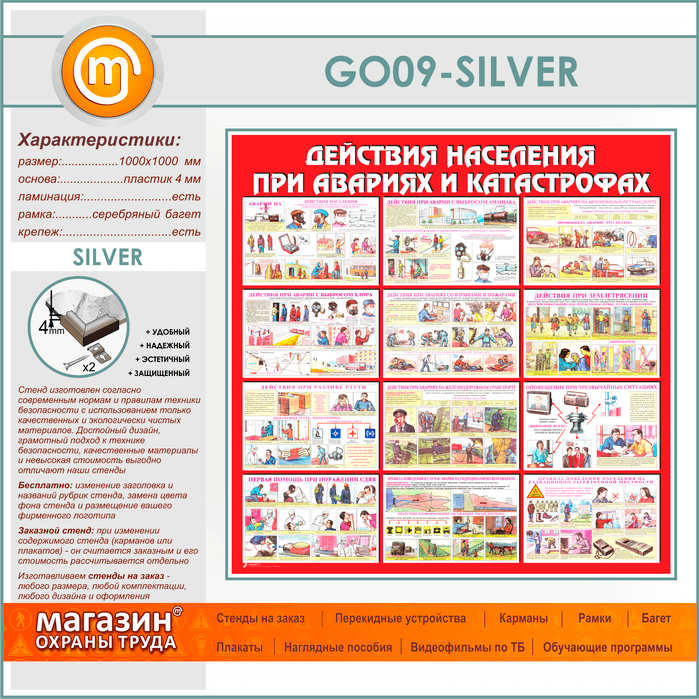 Стенд «Действия населения при авариях и катастрофах» (GO-09-SILVER) в Ачинске купить
