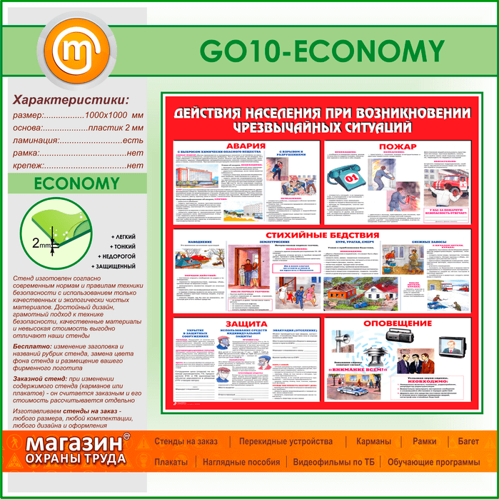 Стенд «Действия населения при возникновении чрезвычайных ситуаций» (GO-10-ECONOMY) в Ачинске купить