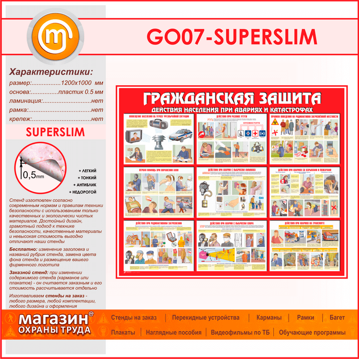 Стенд «Гражданская защита» (GO-07-SUPERSLIM) в Ачинске купить