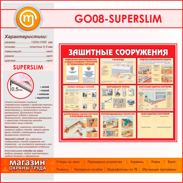 Стенд «Защитные сооружения» (GO-08-SUPERSLIM) в Ачинске купить