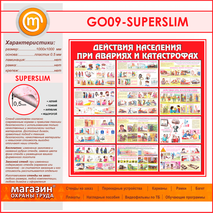 Стенд «Действия населения при авариях и катастрофах» (GO-09-SUPERSLIM) в Ачинске купить