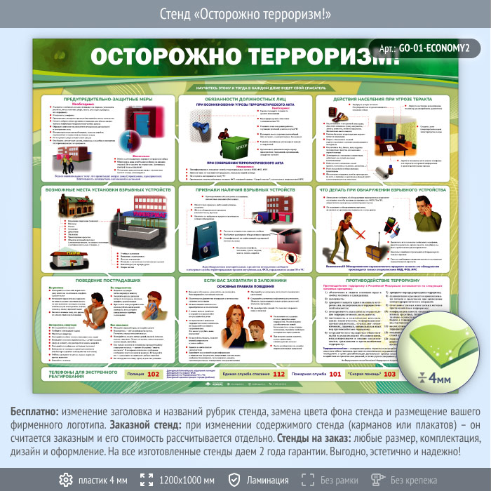 Стенд «Осторожно терроризм!» (GO-01-ECONOMY2) в Ачинске купить
