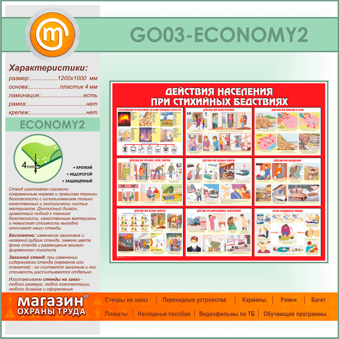 Стенд «Действия населения при стихийных бедствиях» (GO-03-ECONOMY2) в Ачинске купить